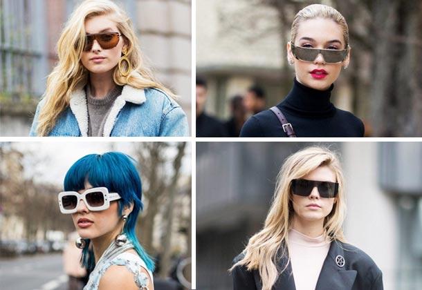 同样的遮盖原理,粗而宽的镜腿也会在视觉上也能有效缩短脸型,比如神秘又炫酷的Shield墨镜、未来又新潮“太空时代”墨镜。