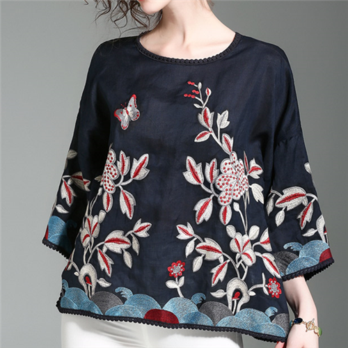 绣花是这款衣衣的亮点,大朵鲜艳的花儿点缀着衣身,在暗沉的背景色的衬托下,形态逼真,娇艳欲滴。后领口选择一粒扣设计,露出白皙的背部肌肤,与衣衣颜色形成对比,更显肌肤的嫩白。领口和衣摆处不仅做工精湛,而且浑为一体,彰显优雅高贵。