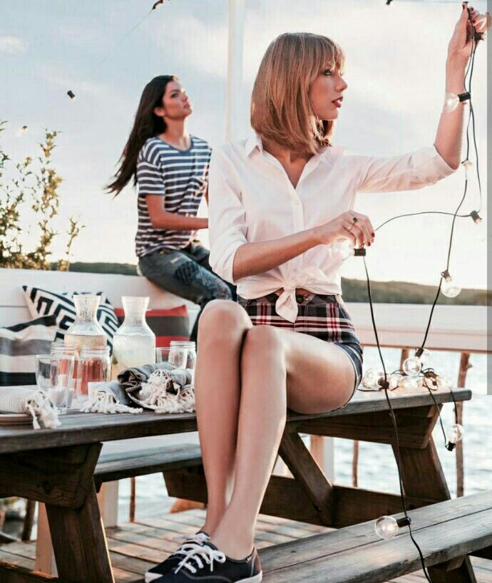 百搭的白色衬衫和格子裙搭配,这里的白衬衫有一种非常清爽大方的感觉,非常简单和搭配,格子裙更是代表高雅和古典的风格。这种搭配既能突出女性的知性,又能穿出高雅、时尚,具有减龄的作用。