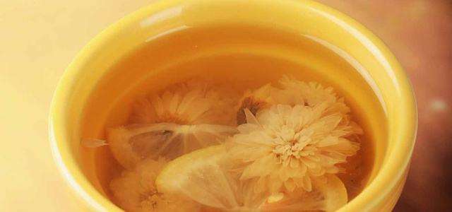 做法:1.将柠檬用盐搓洗干净,切片 2.往杯中放入菊花,冰糖,再放入柠檬片,注入开水 3.稍凉后加入蜂蜜,搅匀即可