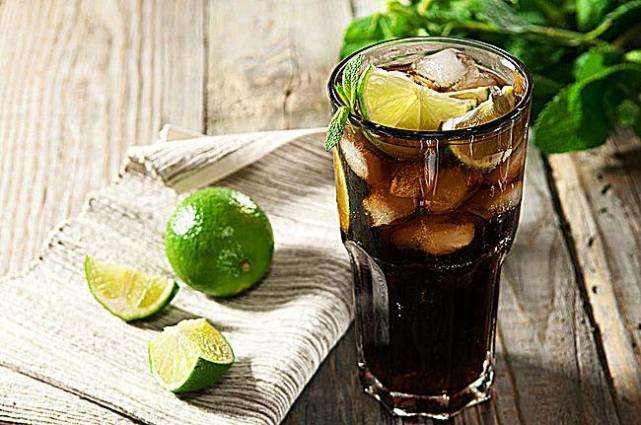 做法:将可乐倒入杯中,加入柠檬片,再加入适量冰块即可