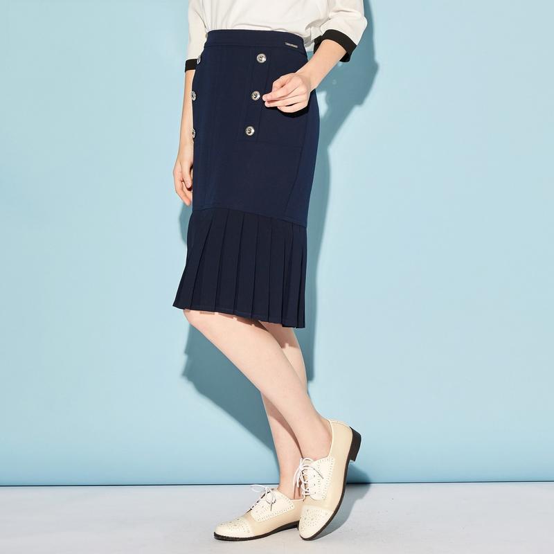这款百褶裙最大的特点就是双排扣的设计,让这件衣服看上去非常时尚,搭配衬衫,青春感气息非常强,在穿一双高跟鞋,让你更加具有女人味,还能让你拥有大长腿。
