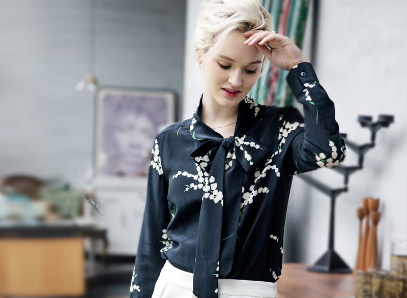 非常正式的一款,小立领的设计显得精致个性,让你修长白皙的脖颈显得更加突出,小碎花的样式也是今年潮流的样式,非常符合你的品味和气质。