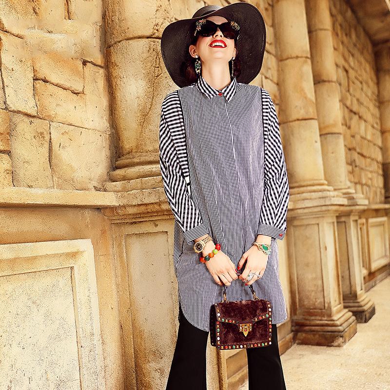 长款的衬衫是介于白领装和时尚街拍装之间的那一款,条纹的经典元素让这件衬衫显得经典又时尚。长袖的设计也说明了这是一款秋天的衬衫,时尚满满又干练十足。