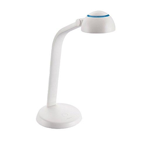 这款台灯灯身采用ABS塑料,单键4档调光,由大到小,然后熄灭。台灯的灯罩、灯头、灯身均可进行旋转,可以方便地调整发光方向,出光面也比较广,光线可以轻松覆盖整个桌面,价格也比较实惠,是一款性价比较高的产品。
