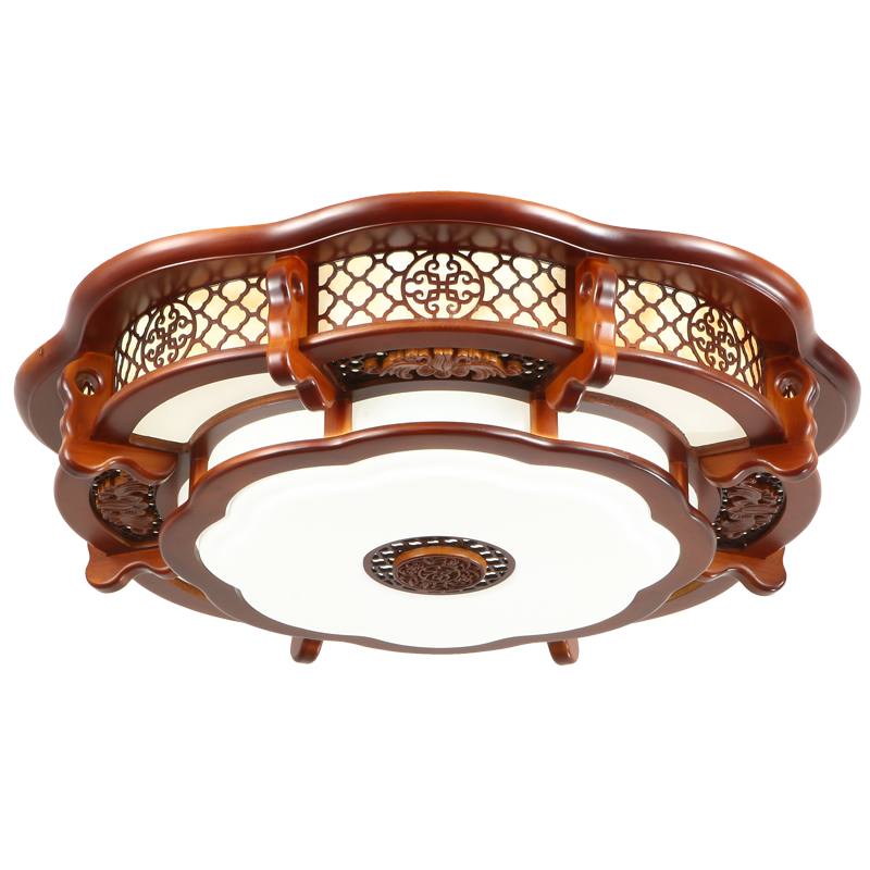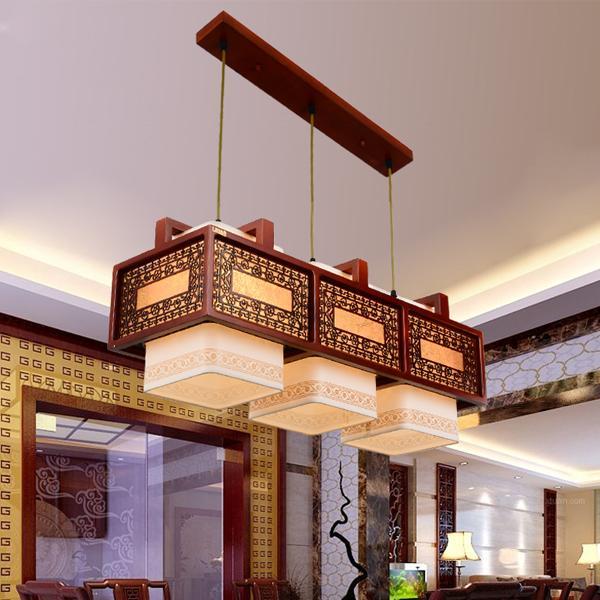 实木与陶瓷的结合,带来这款充满中式古典韵味的吊灯;古典的灯笼形陶瓷镂空灯罩,与实木雕刻花型相互辉映。