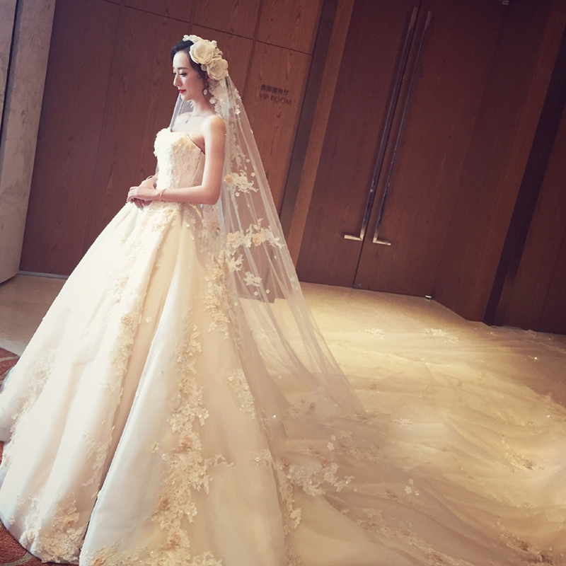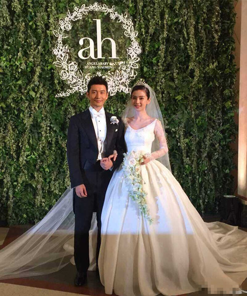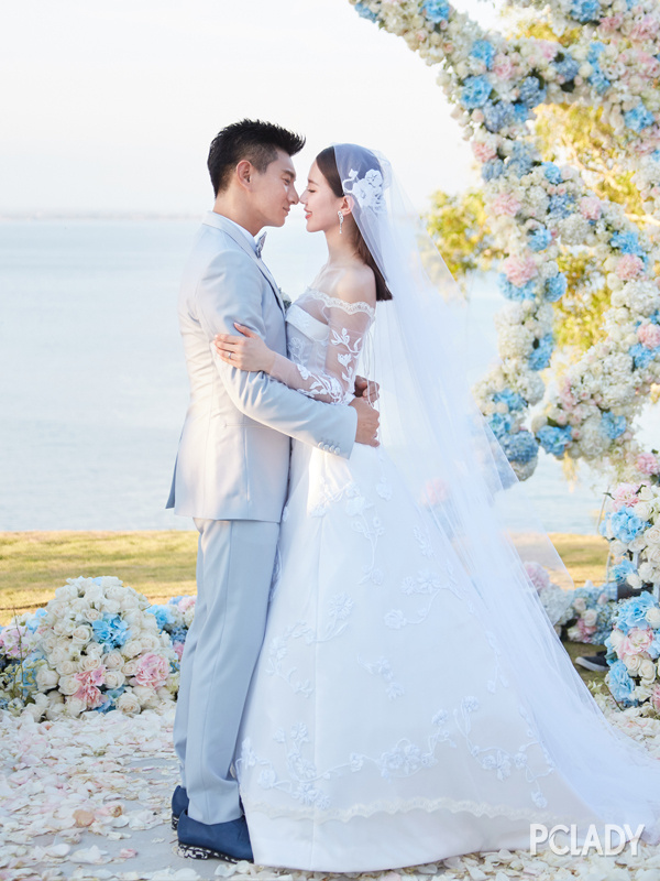 Angelababy婚礼当天的婚纱来自DIOR迪奥高级定制,由迪奥裙装订制工坊和巴黎刺绣工坊共同完成其制作。