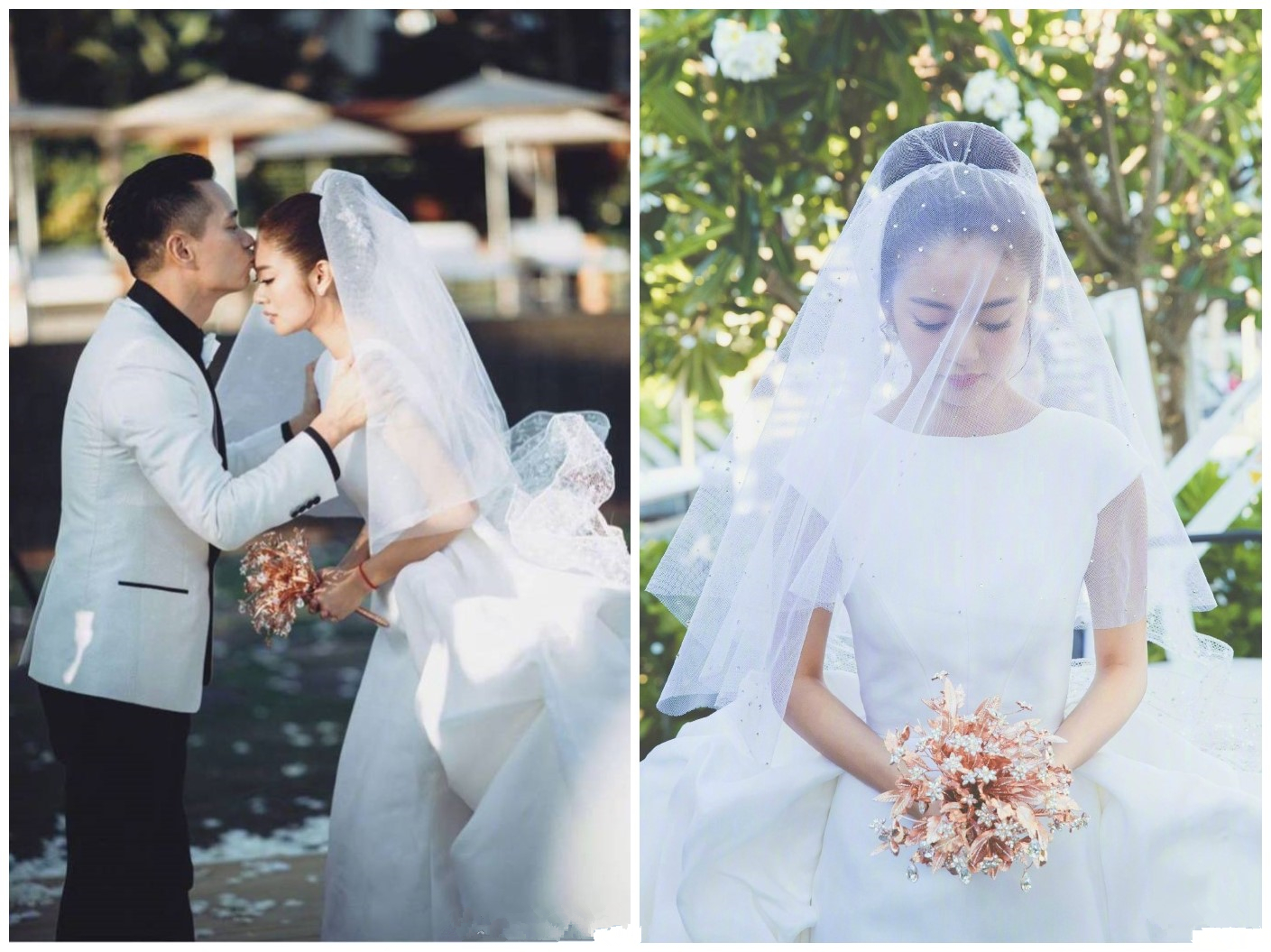 陈妍希选了意大利品牌Alberta Ferretti的露肩婚纱,没想到脸上肉嘟嘟的她,居然有辣么美的锁骨!