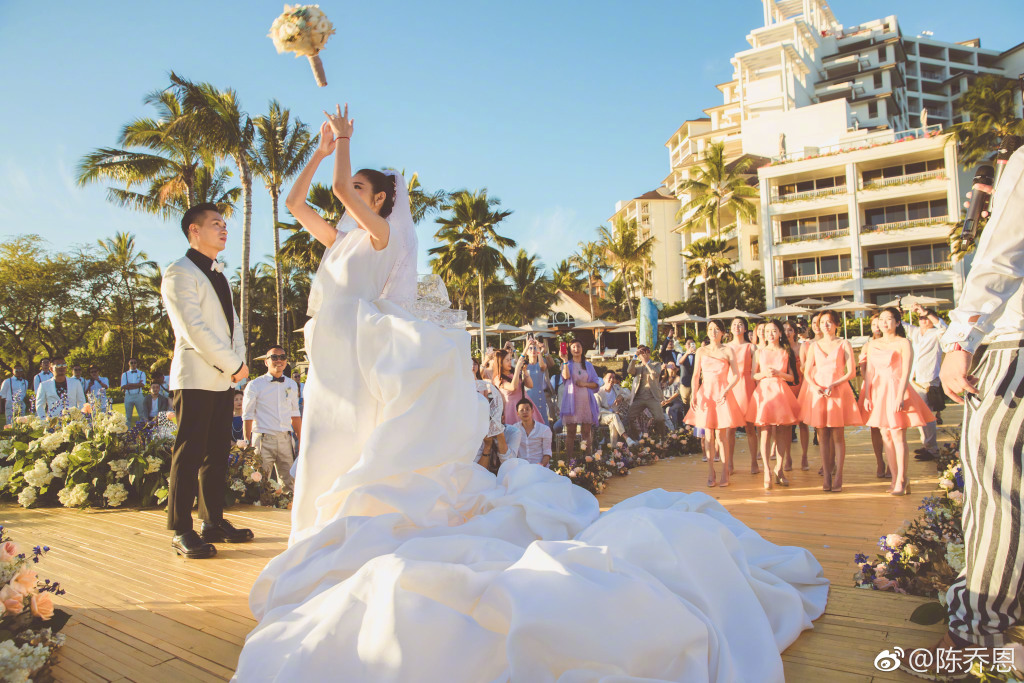 最后,抛捧花环节,被陈乔恩抢到了。希望下一个好消息的就是她了。
