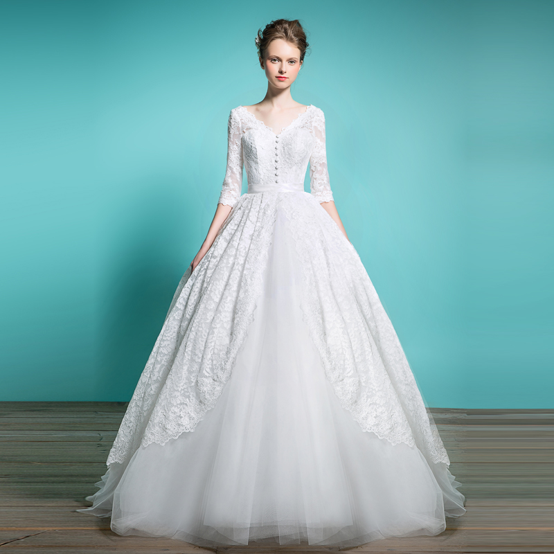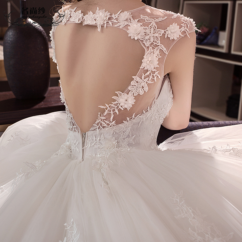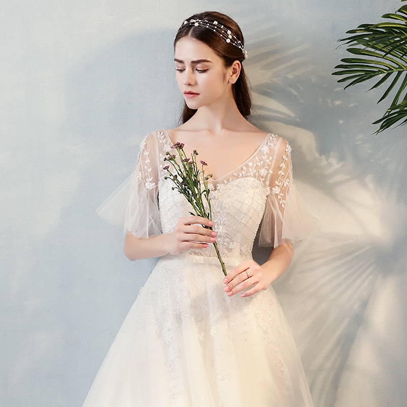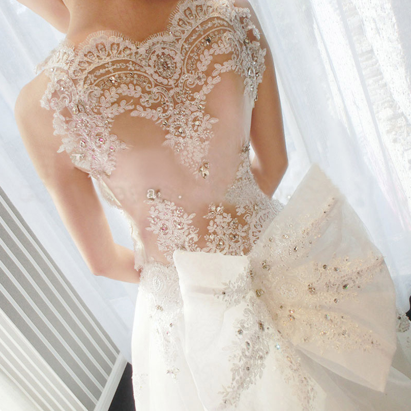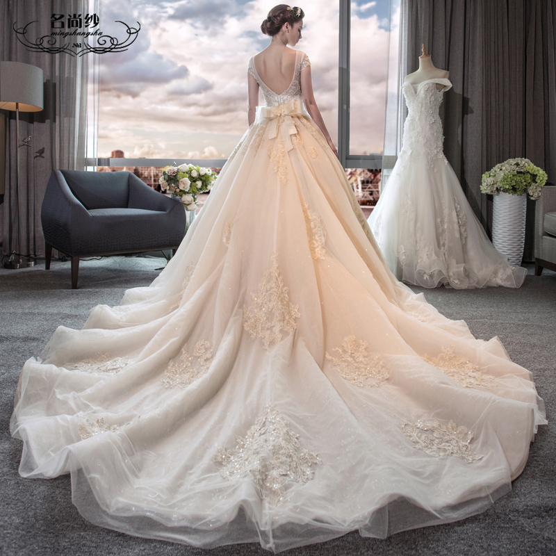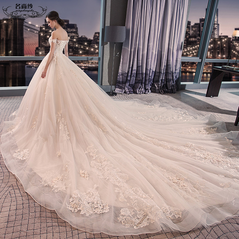 奢华钉珠大拖尾 宫廷公主风 显瘦一字肩