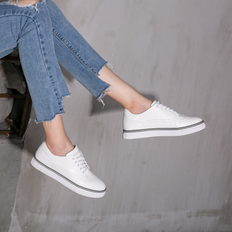一双皮质的小白鞋让你非常的有质感之外,下雨天踩水什么的都没关系还特别的好清洗,轻盈的穿着感非常的舒适又简单很好搭配衣服不会太突兀或者很难看的感觉,厚底的设计让你更加显高哦。