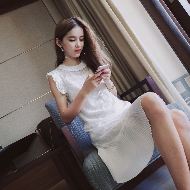 谜秀 蕾丝连衣裙女两件套无袖夏装2017新款韩版宽松甜美夏季A字裙