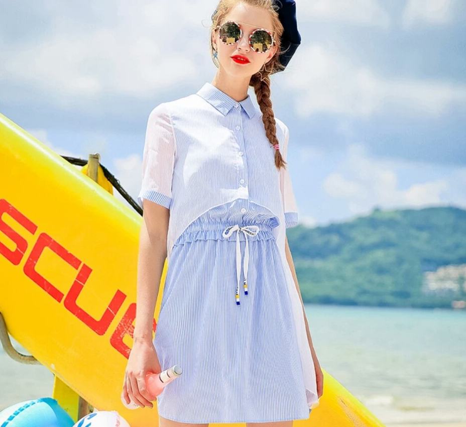 衬衫裙总是会让美眉们变得更加有吸引力,可以是条纹衬衫裙的时尚,可以是印花连衣裙的柔美,可以是格子连衣裙的复古风,亦或是波点连衣裙的几何美,不同的风格会展现不同的你,这个夏季衬衫连衣裙与你同行。