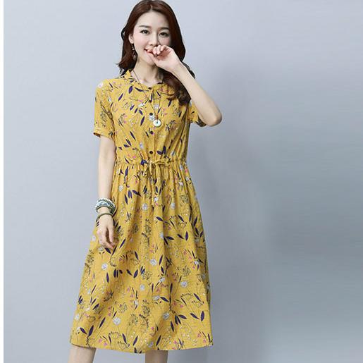 宽松的衣服版式,可以巧妙的遮盖住女性身体上的赘肉,让女性的身材变得更加完美,同时让美眉们还不会感受到闷热的闷热感,连衣裙以黄色调作为主色调,让女性穿在身上更显活力,系带的设计,可以根据女性要求对连衣裙的大小进行调节,更加方便。
