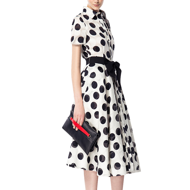 收腰的版式设计,可以调整女性在视觉上的身材比例,让女性的腿部显得更加高挑,连衣裙以白色调作为主色调,搭配着黑色圆形印花图案,更是让连衣裙告别了单调感,具有了几何的美感,优质的衣服面料,在与皮肤接触时亲肤柔软,耐磨性还非常好,延长了衣服的使用寿命。