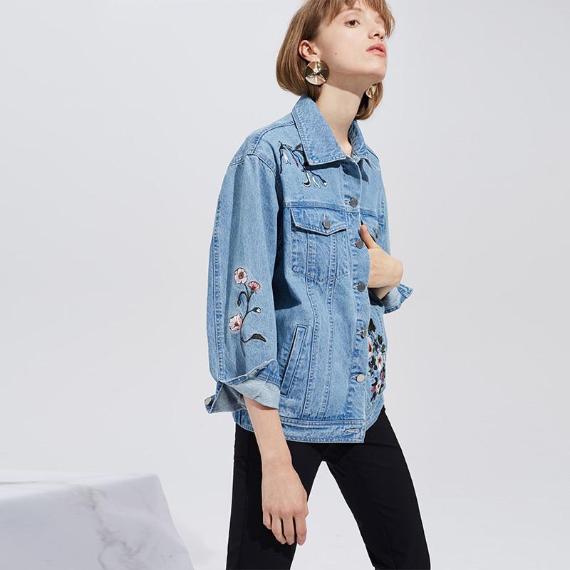 多处精致刺绣融入其中,增添了外套更多的柔和女性美。直筒宽松版型,更添服装的休闲舒适感。