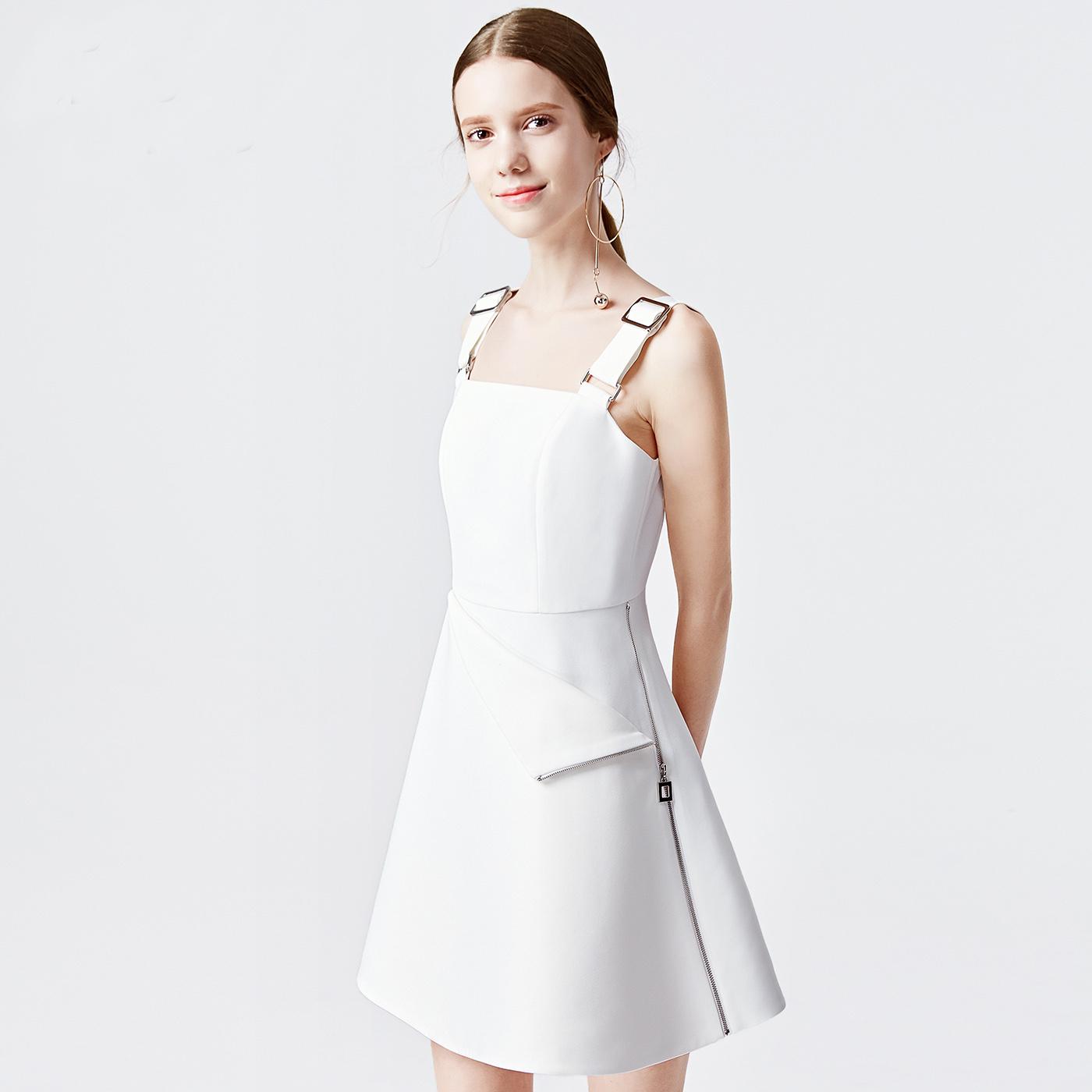 时尚减龄的一款纯色背带裙,一字领与吊带结合,半露香肩,性感但不浮夸。侧边独特拉链设计个性时髦,增强立体层次感。合体的收腰设计,凸显女性纤细的腰肢曲线。干净素雅的纯白色知性唯美,透露出优雅气质。裙摆运用A字版型设计,更是增添淑女气质。