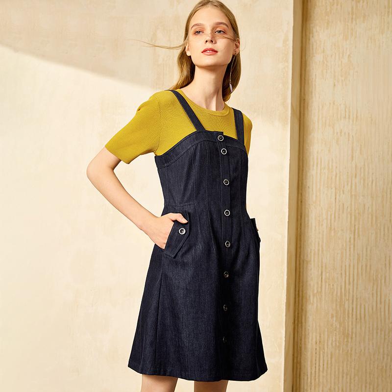 固定的肩带长度,营造出抹胸的感觉,简约时尚。单排扣的设计美观又精致,方便穿脱的同时,也非常的潇洒帅气。两侧个性化口袋装饰俏皮可爱,又为裙子增添了些许的休闲感。简洁宽松的版型,流畅的线条设计,不仅藏肉显瘦,且真的不挑人穿哦。