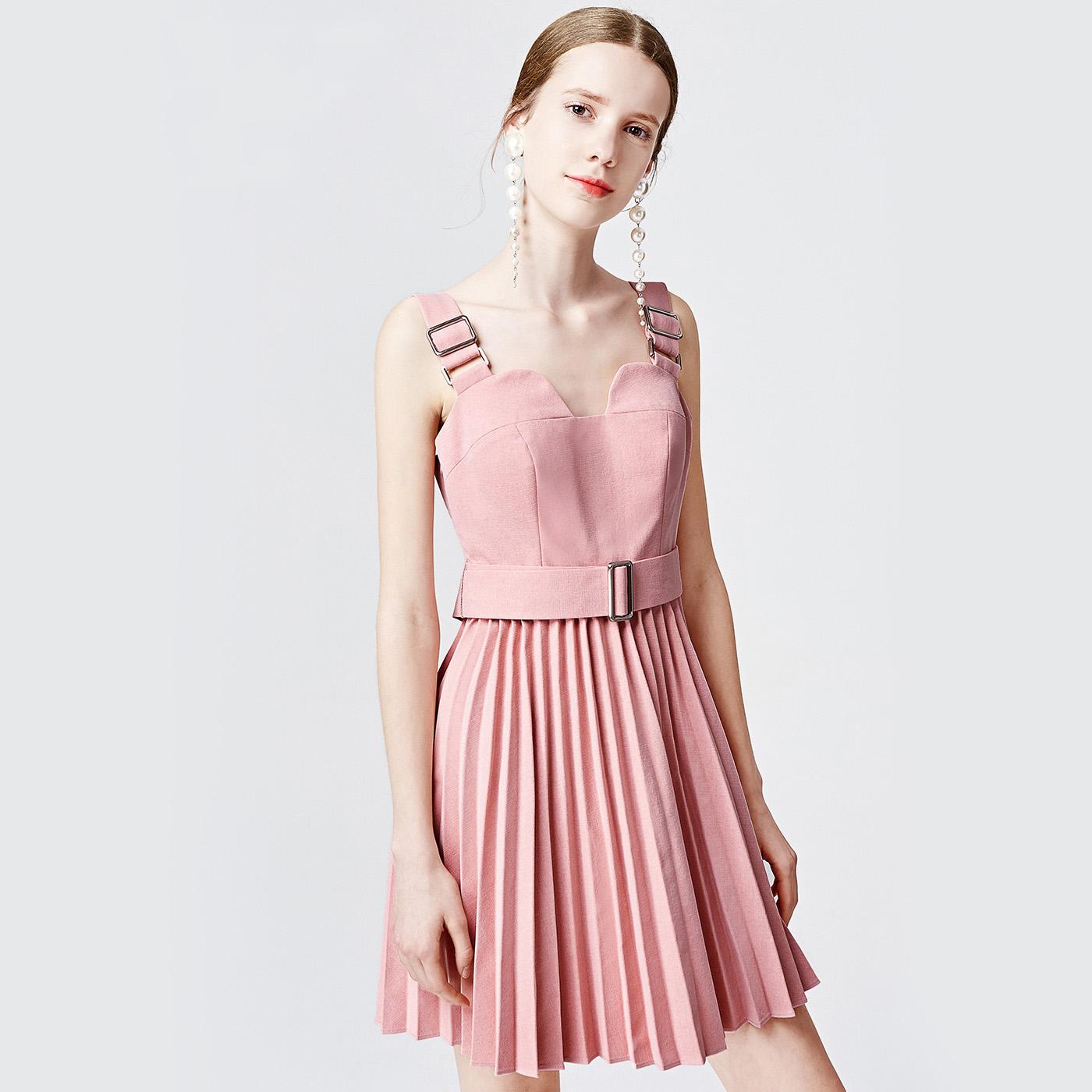 可调节的宽肩带设计俏皮减龄,散发出几分少女气息。A型剪裁设计优雅显瘦,视觉拉长腿部线条,塑造完美身型。百褶裙摆,一阵微风吹过,便会翩翩起舞,尽显迷人的淑媛气质,收腰的版型,勾勒出动人心弦的曼妙身姿。