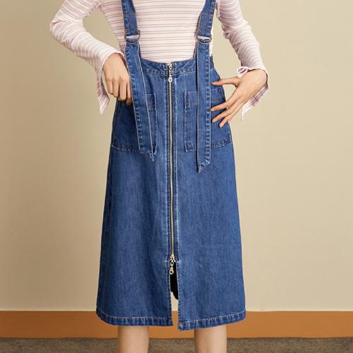 这款中长款的牛仔半裙,背带的设计,十足减龄。拉链开叉的设计,想多性感就可以多性感,想多清纯就可以多清纯,关键是拉链控制好开叉就可以了。