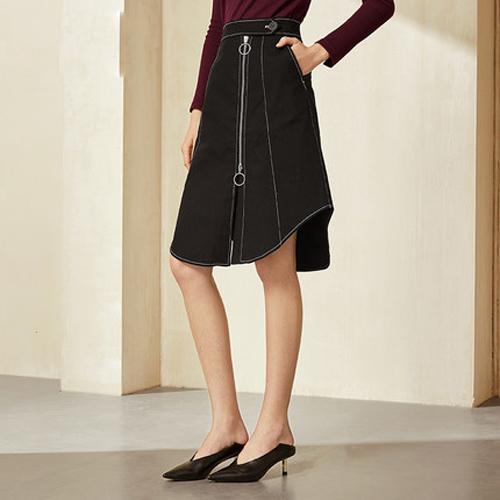 推荐的这件牛仔半裙拉链的元素设计,很有设计感,下摆A字不规则的设计,如果两件叠穿,刚好露出衬衣群的下摆。这种穿搭适合初秋刚好合适穿,先收藏起来吧!