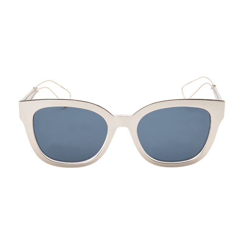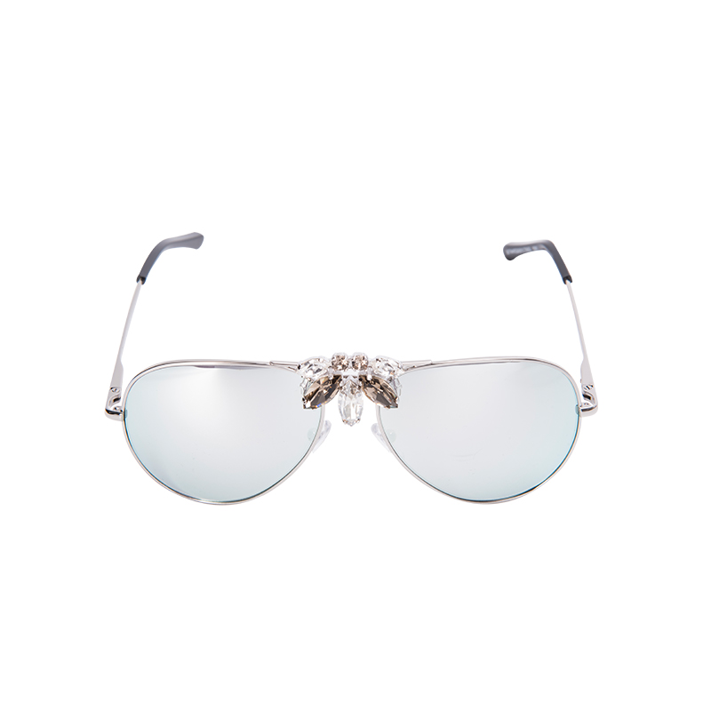 同样是前卫的白色色调,这款墨镜则以金属质感为主,轻细的镜架体现了女性的时髦巧思,镜架上的水晶装饰让你轻松跻身成为时尚达人,细节控可不要错过了哟!