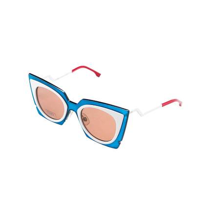 蓝、白、红三色的撞色已经够吸睛了,这还不够,夸张的猫眼设计时尚感瞬间爆棚,茶色镜片与镜框颜色完美融合。如此的造型感,不得不让人怀疑戴了副假墨镜。