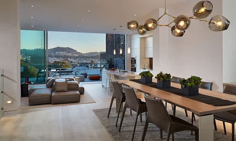 一款兼具后现代主义风的餐厅吊灯,它以简单轻盈的风格,温柔滴展示了它的美感。