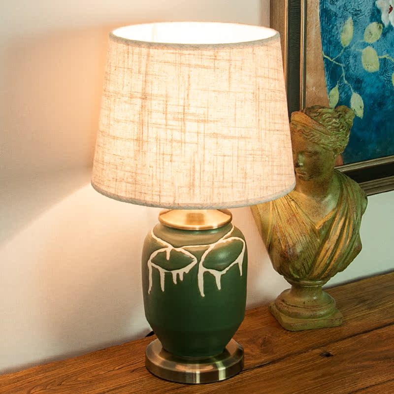 这款新中式风格的台灯,陶瓷材质制成的灯柱,经过全手工的拉胚、手工的雕刻之后,造型显得十分大气沉稳,古朴又雅致,精密的手工布罩,灰分经久耐用,布艺材质的灯罩不易藏灰,透出来的灯光柔和不刺眼,让居家环境更加温馨浪漫。