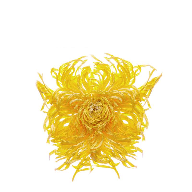 形似蟹爪,遇水则满。黄酮素含量极高,富含多种氨基酸、维生素和微量元素。气味芳香,可消暑生津,袪风,润喉,养目,解酒。具有“香、甜、润”三大特点,用沸水冲泡1~2分钟就会看到水的颜色就会渐渐酿成微黄色,通透清澈,淡淡的菊香也会让你着迷。